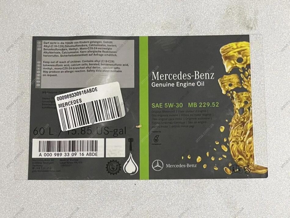 Олива моторна 5W-30 MB 229.52 (60 Liter) Mercedes G-Class, CLS-Class, S-Class, C-Class, Sprinter, E-Class, M-Class, Vito, GLK-Class, B-Class, A-Class