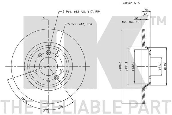 Минимальная толщина [мм]: 10.0