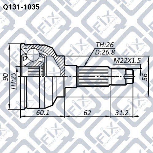 Зубчатое соединение со стороны коробки: 25