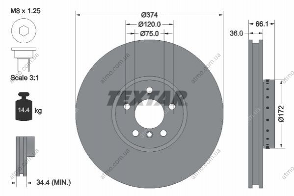 Толщина тормозного диска (мм): 36.0