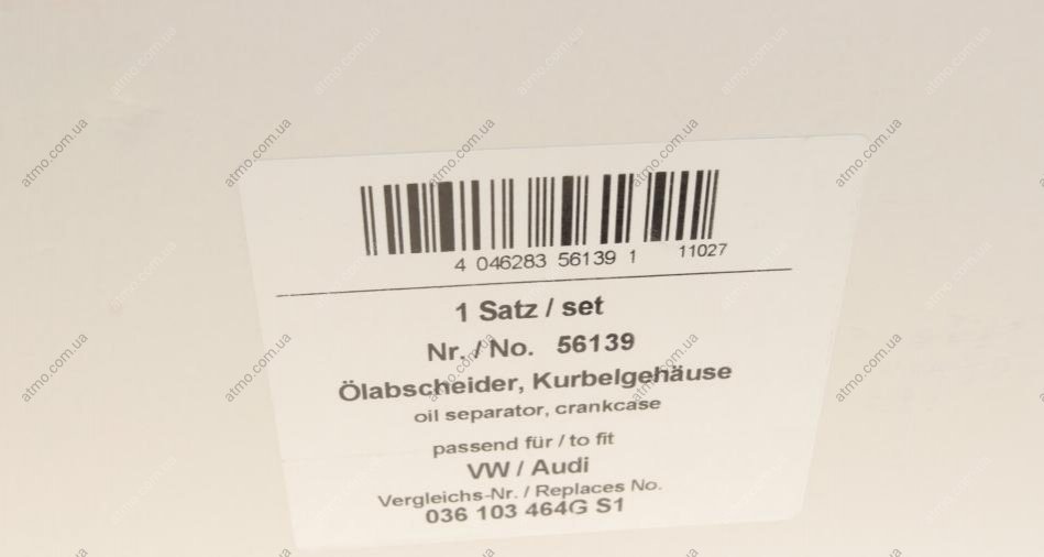 Масловідокремлювач системи вентиляції картерних газів Volkswagen Polo, Golf, Bora, Skoda Fabia, Seat Leon, Toledo, Skoda Octavia, Volkswagen Caddy